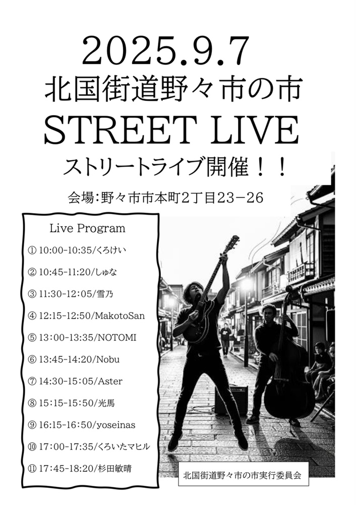 石川・野々市でライブイベント出演 SCHEDULE 2025/09/07(日) 10:00 - 石川県野々市市 START10:00 10時からイベントはスタートします😊 2枚目右下のバンドのイラストがあるのが会場です 16:10-16:40/くろいた≒マヒル 17:00-17:35/くろいた≒マヒル ※時間変更あります URLをコピーする 報告する